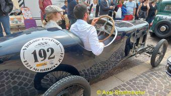 ein Autokorso schiebt sich durch die Fußgängerzone
